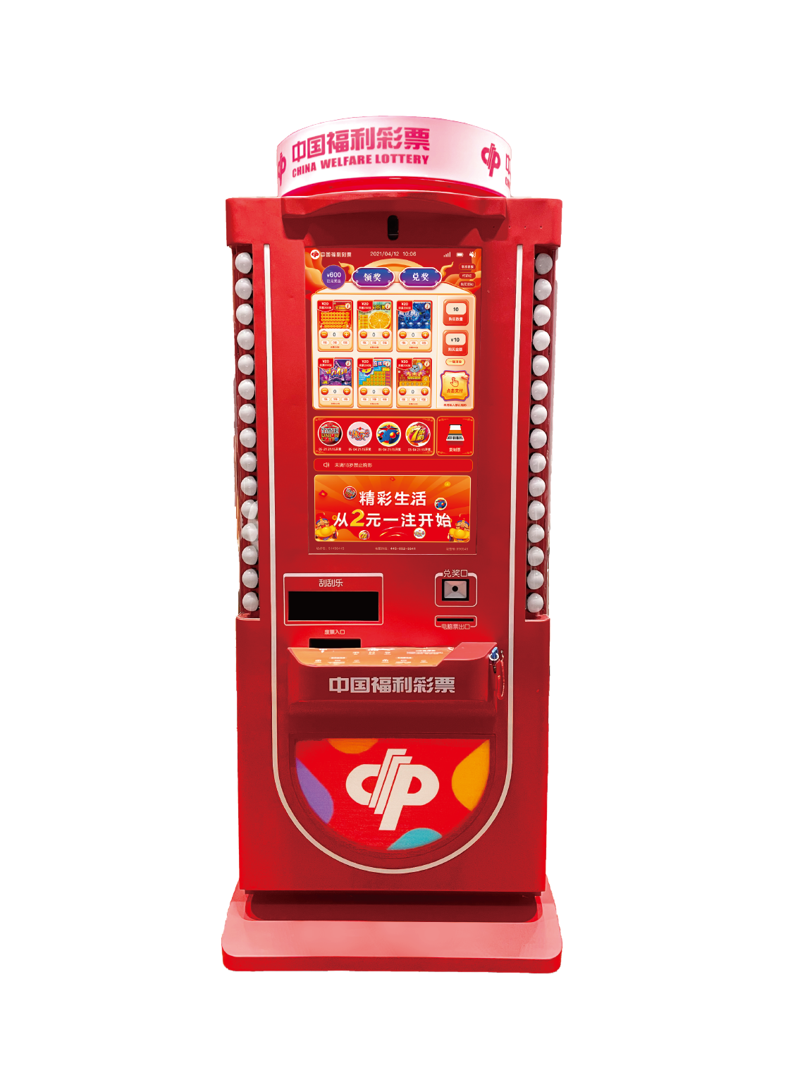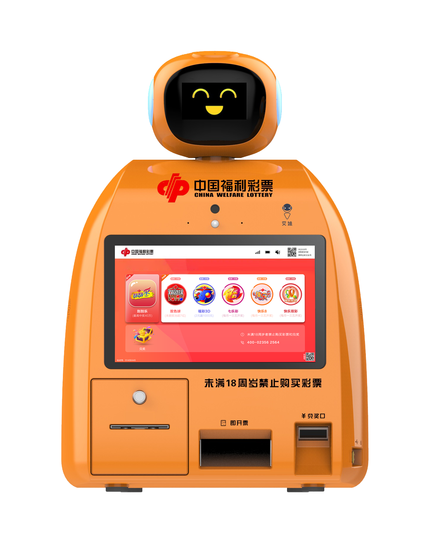 支持多種電腦彩票、六種即開型彩票及整包刮刮樂同時銷售。購彩者可通過語音、觸屏操控購票,微信、支付寶支付,終端系統實施自動兌獎,也可在官方小程序直接兌獎,減少終端運維,解決售彩難點,可廣泛用于大型商超、酒店、電影院等多種兼營場所。