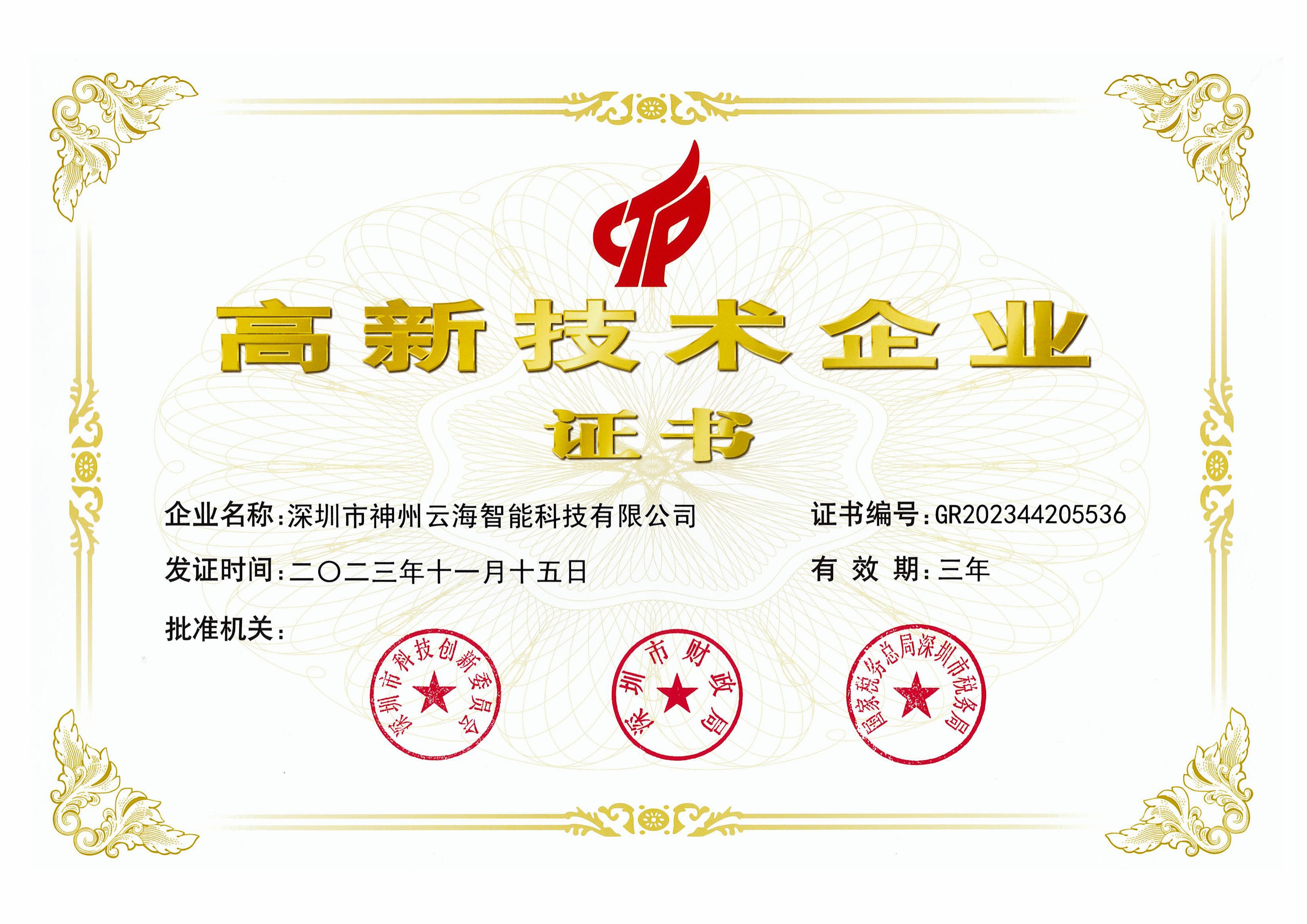 高新技術企業證書